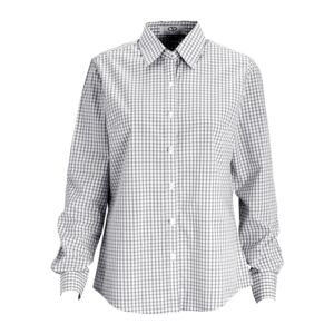 Check her out! By popular demand, we?ve added a ladies? version of our best-selling patterned button-down shirt with a spread collar and bust darts for feminine flair. Cool fashion neutral color coordinates with all. 60% cotton/40% polyester, 3 oz., spread collar, two-color yarn-dyed gingham body, narrow reverse continuous placket, polished pearl buttons, single-needle tailoring, back yoke, bust darts, buttoning sleeve placket and cuff. XS-3XL.