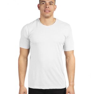 Next Level Mens 3.5 Ounce Poly/Cotton Crewneck T-Shirt. 65/35% poly/combed ring-spun cotton 40 singles, 3.5 ounces. Set-in collar with front cover stitch. Satin label.