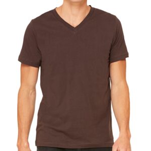 Bella+Canvas Unisex 4.4 Ounce Jersey Short Sleeve V-Neck T-Shirt. Sideseamed. Retail fit. Unisex sizing. Shoulder taping. Tear Away Label. Solid Colors: 100% Airlume Combed and Ringspun Cotton, 32 singles 4.2 oz. (Ash 99/1% Airlume Combed and Ringspun Cotton/poly; Athletic Heather 90/10% Airlume Combed and Ringspun Cotton/poly; All other Heather CVC/Blend colors 52/48% Airlume Combed and Ringspun Cotton/poly. Marble Colors: 91/9% Airlume Combed and Ringspun Cotton/poly, 30 single 4.0 oz. Neon Colors: 52/48% Airlume Combed and Ringspun Cotton/poly, 40 single 3.6 oz. Slub: 50/37.5/12.5 poly/Airlume Combed and Ringspun Cotton/rayon. Mineral Wash (due to specialized washing process, each shirt is unique): 100% Airlume Combed and Ringspun Cotton, 32 Single 4.4 Oz.