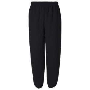 Gildan Heavy Blend 8.0 Ounce Adult Sweatpants. 8.0 ounce 50/50 cotton/polyester sweatpants with covered elastic waistband and drawcord. Elasticized cuffs. No side seams. Tear away label.