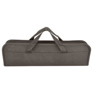 • Case features zipper closure, front open pocket, and polyester web handles (measuring approx 6.5"l x 1"w)