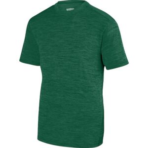 Augusta Adult Shadow Tonal Training T-Shirt. 100% polyester heathered wicking knit. Wicks moisture away from the body. Pad print label. Self-fabric crew neck collar. Set-in sleeves. Double-needle hemmed bottom and sleeve.