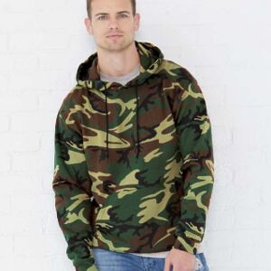 Code V Adult 7.5 Ounce Camo Pullover Fleece Hoodie. Fit: Adult Unisex - A true-to-size fit that s perfectly proportioned for comfort. 7.5 oz. 60/40 cotton/polyester printed fleece. Urban Woodland is sewn with 100% cotton thread. Fleece lined hood with solid color drawstring. Coverstitched hood, neck, shoulders and armholes. Coverstitched 2" 1x1 ribbed cuffs and bottom band. Coverstitched front pouch pocket. Side seamed. Easy Tear label.