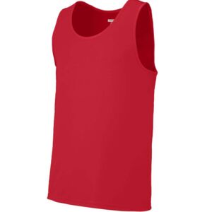 Augusta Adult Training Tanks. Polyester wicking knit fabric. Wicks moisture away from the body. Tear away label for comfort. Self-fabric binding at neck and armholes. Double-needle hemmed bottom.