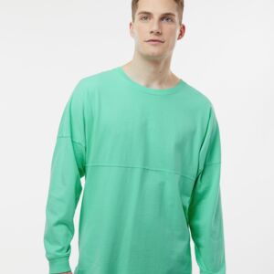 J-America Adult 6.5 Ounce Game Day Jersey. 6.5 Ounce 100% Cotton jersey fabric, rounded bottom waist, trademark front-and-back yoke. Oversize cut.