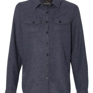 Burnside Ladies 5.4 Ounce Solid Flannel Shirt. 5.4 oz. 80% cotton/20% polyester. Flap pockets with button closure. Button cuffs. Hem bottom. Half-back yoke. Elongated tail. Modern fit. Ships from Sugar Land, TX.